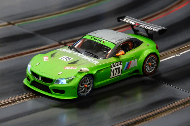 Die Slotdesign Racer (Ford Capri) kamen etwas schwer in Fahrt und mussten zeitweise sogar Platz 3 räumen. Nach der zweiten Sercvicepause war der Capri aber wieder extrem schnell und kassierte die Kieler Yunx wieder ein (Platz 2).
