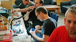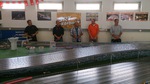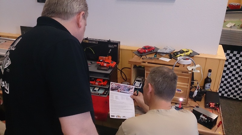 Am Freitag kamen fünf der sechs zugelassenen Teams zum Training. Nach extrem langer Anfahrt schlugen auch die Jungs aus dem Westen (Slotdesign Racer) um 19 Uhr im Renncenter auf. Ein paar Testrunden, und schon zeigten sie, welche Rundenzeiten auf dem Northland Raceway mit gut vorbereiteten Autos gefahren werden können: 6,6 Sec.