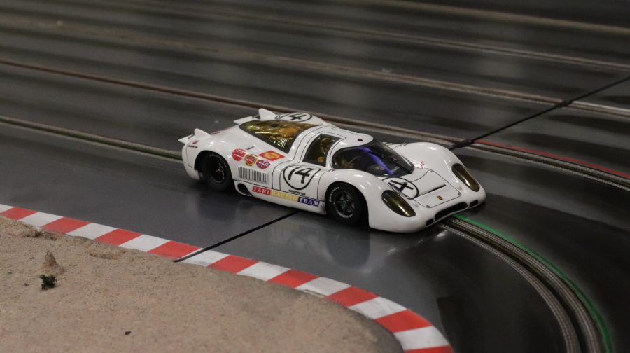 Die Bahn war ohne Moosreste und bei gleichmäßigem Glue konstant im Grip, auch wenn die Motoren ordentlich ziehen mussten. Kurz vor dem Rennstart musste Leo leider aus dienstlichen Gründen weg, so dass die Rennen mit 22 Startern liefen.